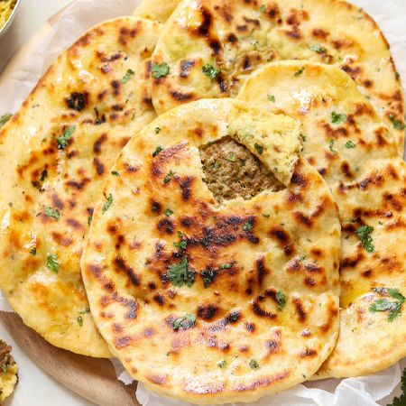 “Our Keema Naan is stuffed with flavorful, tender minced meat and cooked to golden perfection. Soft, fluffy, and packed with aromatic spices, it delivers a perfect balance of taste and texture. A classic favorite that pairs wonderfully with our BBQ platters and curries.”